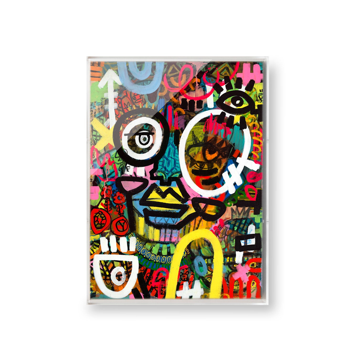 18x24" art piece printed on archival, ultra smooth, matte, fine art paper framed in two 21x27" acrylic panels (1/4 and 1/8 inch thickness) with polished edges.