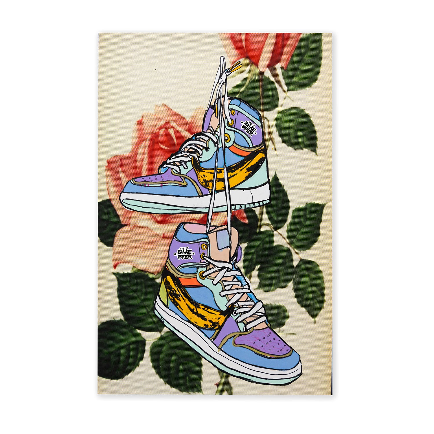 Michael Shaeffer's Chloris comments on how sneakers are another extension of one's personal brand and identity. Shaeffer also decided to use Warhol's banana in place of the Nike swoosh, adding another layer of commentary on branding.