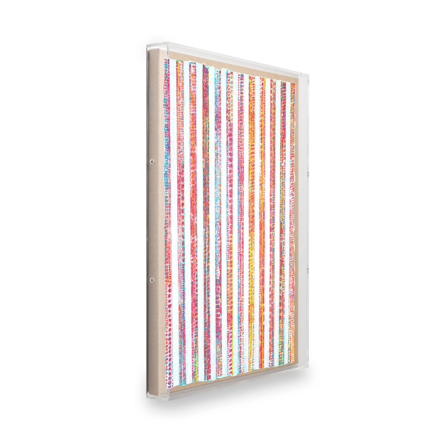 24x36" art piece printed on archival, ultra smooth, matte, fine art paper framed in two 28x40" acrylic panels (1/4 and 1/8 inch thickness) with polished edges.