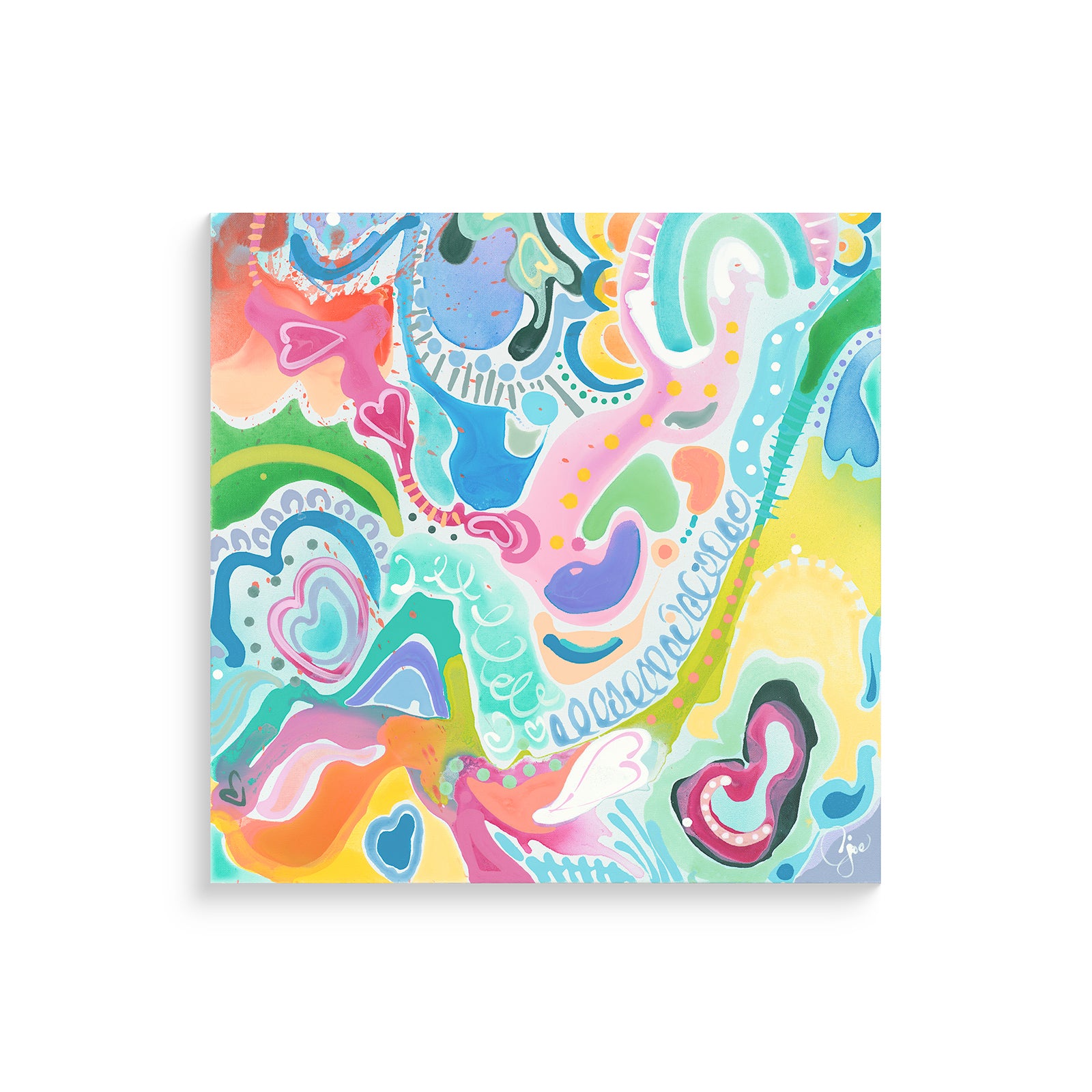 Carolyn Joe's Over the Rainbow is a whimsical and dreamlike piece that captures the magic of possibility and hope. Soft, flowing hues of pastel colors sweep across the canvas, evoking the serene beauty of a rainbow after a storm. Joe’s delicate brushwork and fluid composition suggest a journey from darkness to light, with each color representing a step toward emotional renewal and optimism.