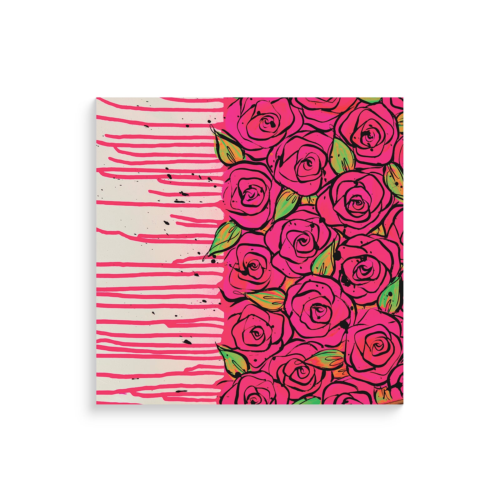 Jenny Hiser’s Stella is a captivating art piece that combines fluid shapes and a striking color palette. The dynamic paint drips and roses evoke a sense of movement and energy, while the rich blend of tones creates depth and intrigue. The work feels both modern and timeless, offering a glimpse into a romantic or playful realm where light and form converge in perfect harmony.