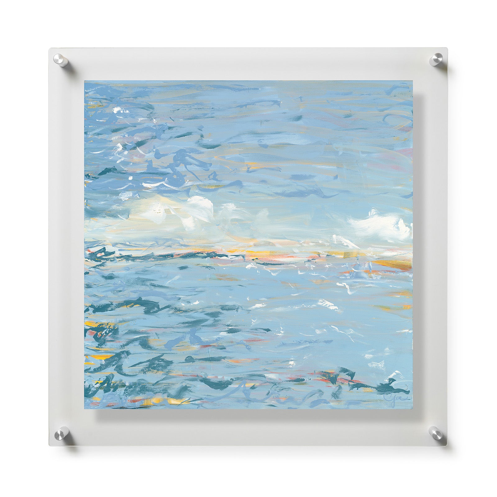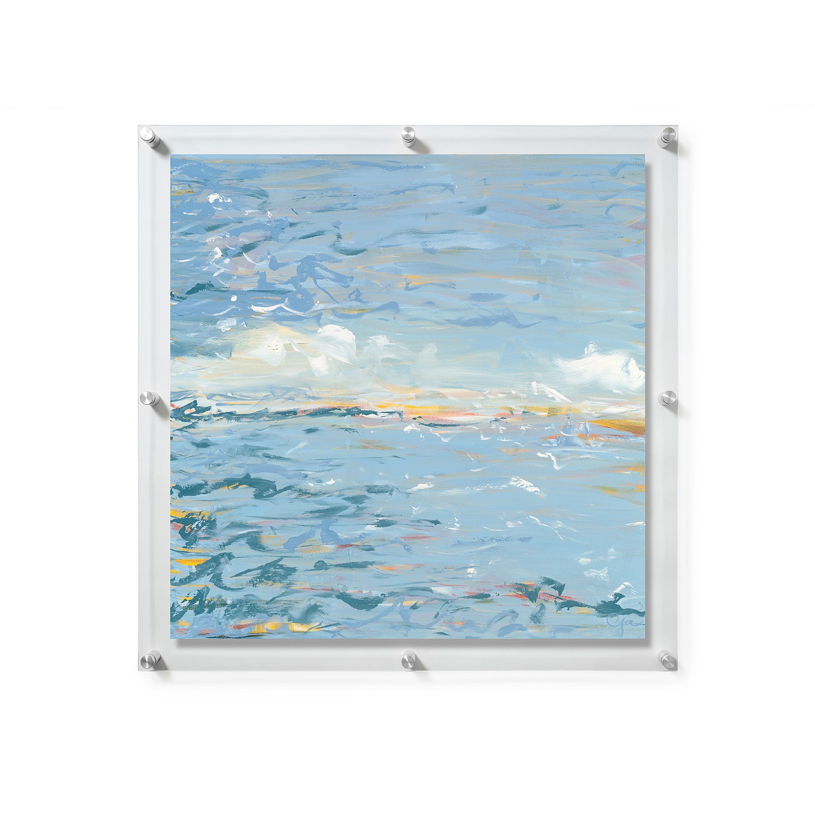 28x28" art piece printed on archival, ultra smooth, matte, fine art paper framed in two 32x32" acrylic panels (1/4 and 1/8 inch thickness) with polished edges.