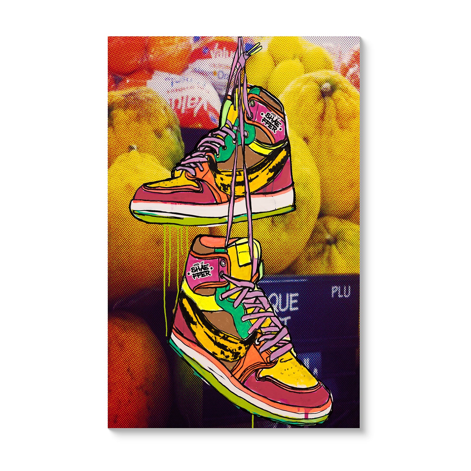 Michael Shaeffer's Unique Fruit comments on how sneakers are another extension of one's personal brand and identity. Shaeffer also decided to use Warhol's banana in place of the Nike swoosh, adding another layer of commentary on branding.