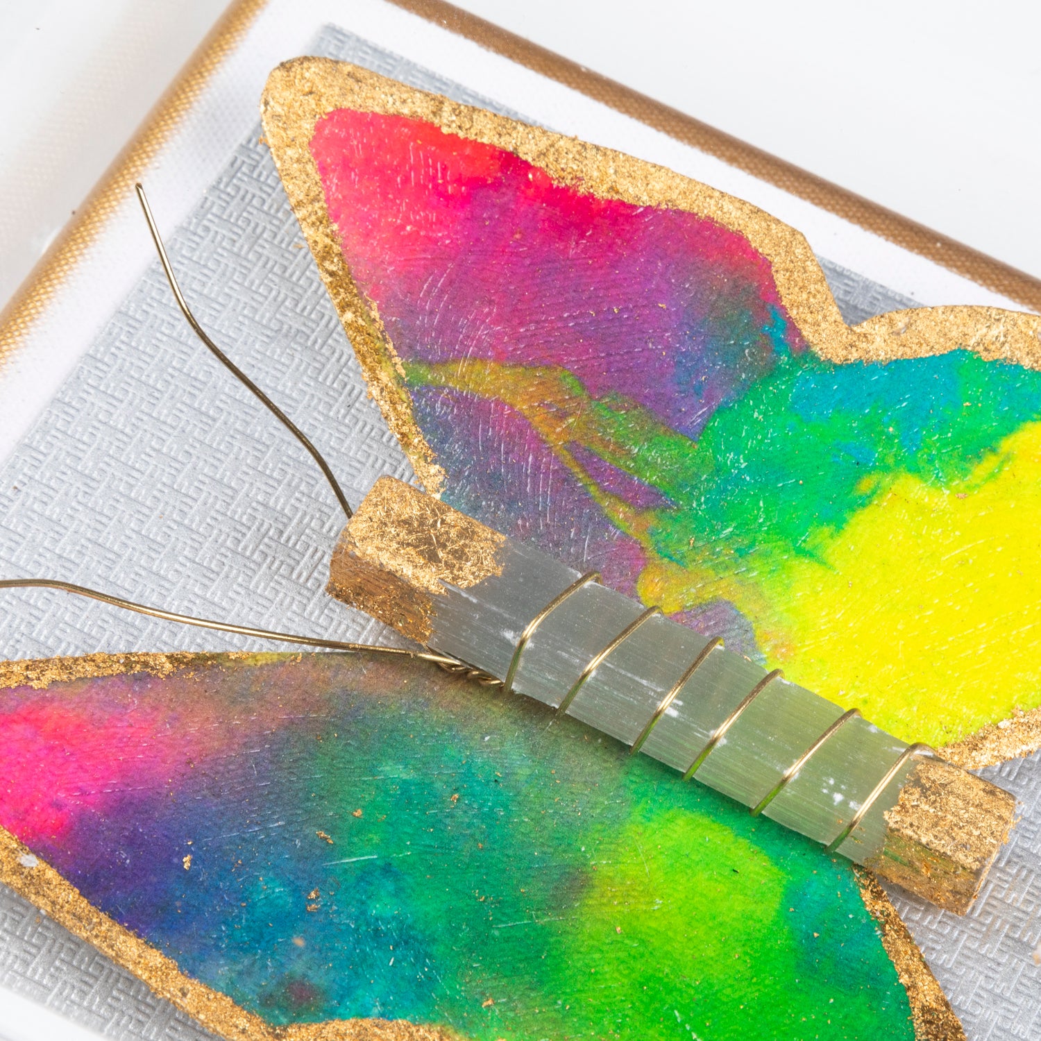 Dana Manly and Wexel Art joined forces to design this exclusive butterfly art featuring gold-dipped selenite, a powerful healing crystal that promotes peace and mental clarity. Inspired by Dana's deep love for butterflies and her incredible eye for color, these delicate beauties symbolize renewal.
