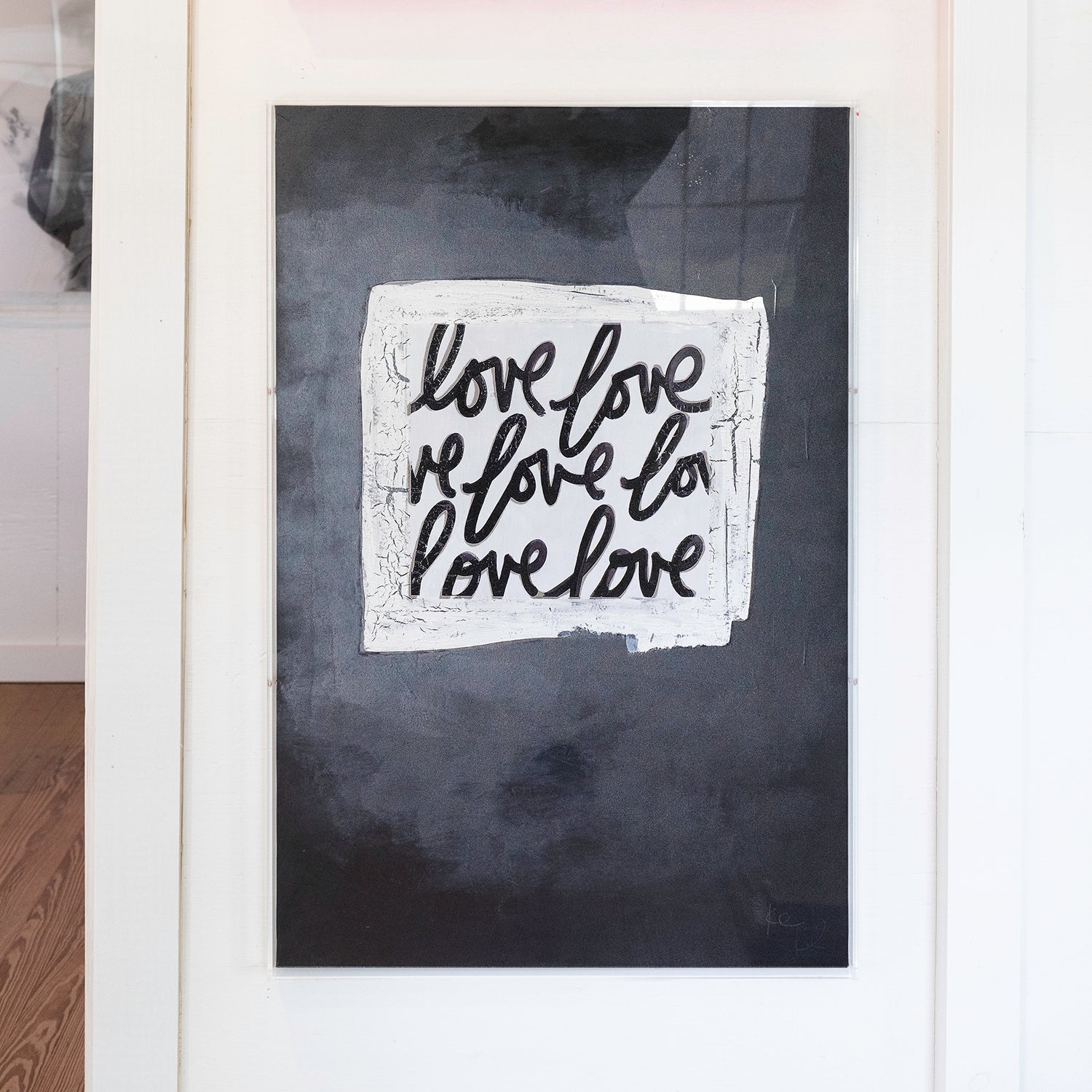 Kent Youngstrom's Love has elements of graffiti with shades of complexity. The lights and shadows created by the lettering complement each other to create a harmonious piece. The piece is also hand embellished with a crackle glaze.