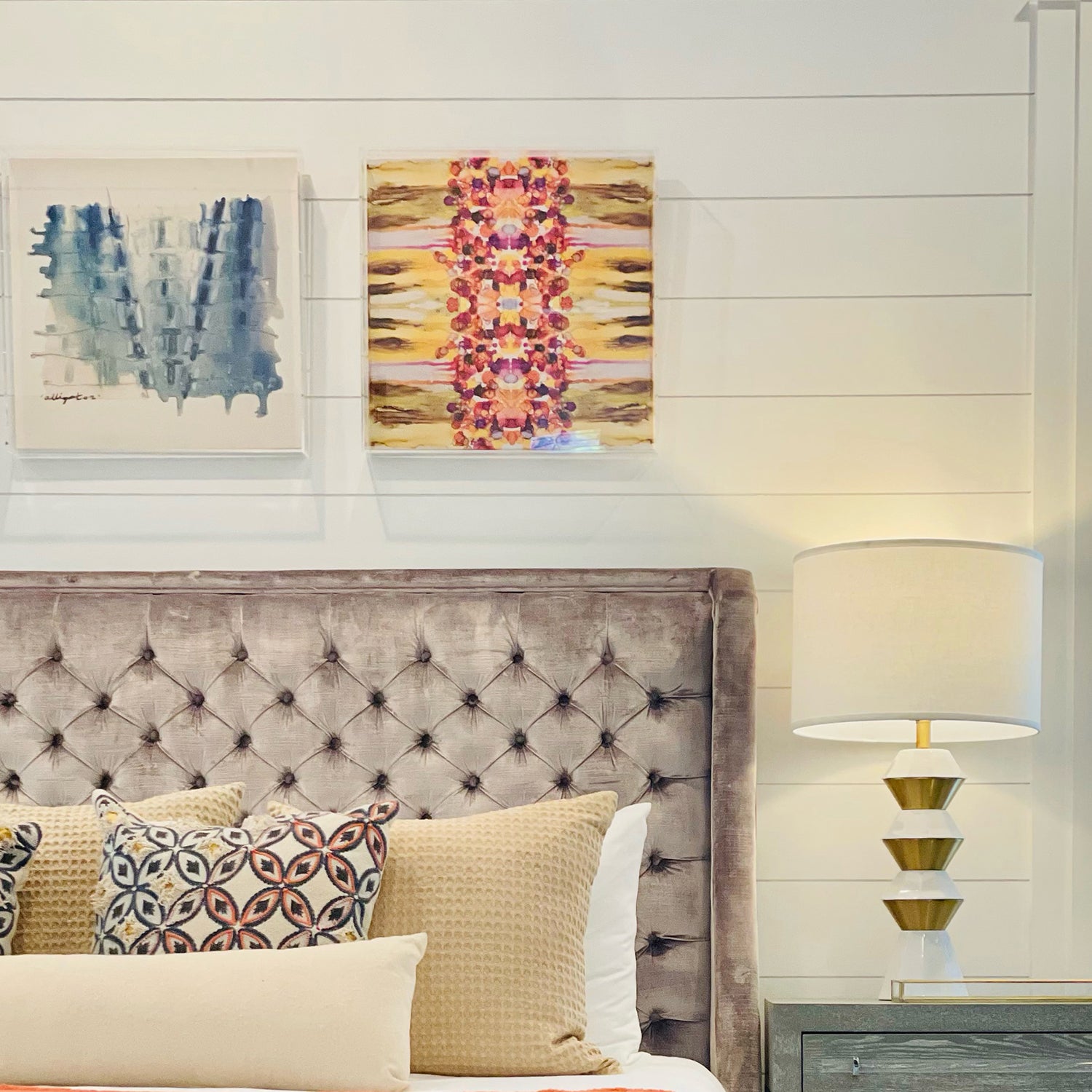 20x20" art piece printed on archival, ultra smooth, matte, fine art paper framed in two 23x23" acrylic panels (1/4 and 1/8 inch thickness) with polished edges.