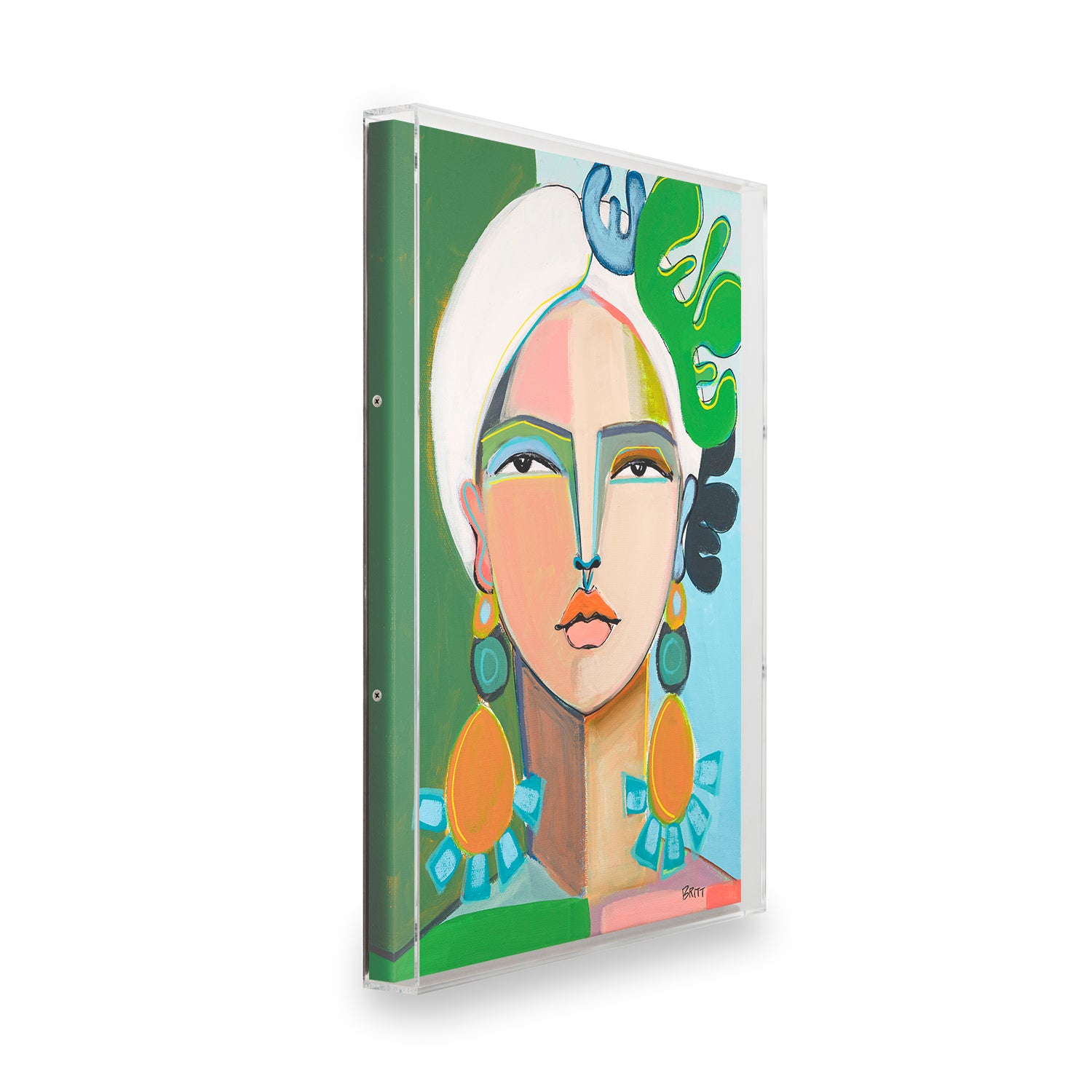 18x24" art piece printed on archival, ultra smooth, matte, fine art paper framed in two 21x27" acrylic panels (1/4 and 1/8 inch thickness) with polished edges.