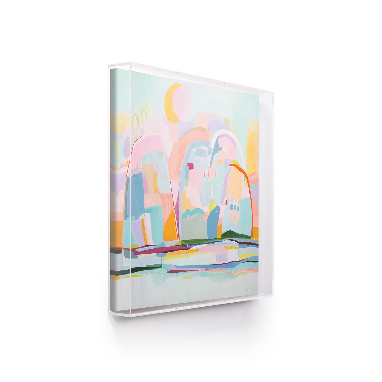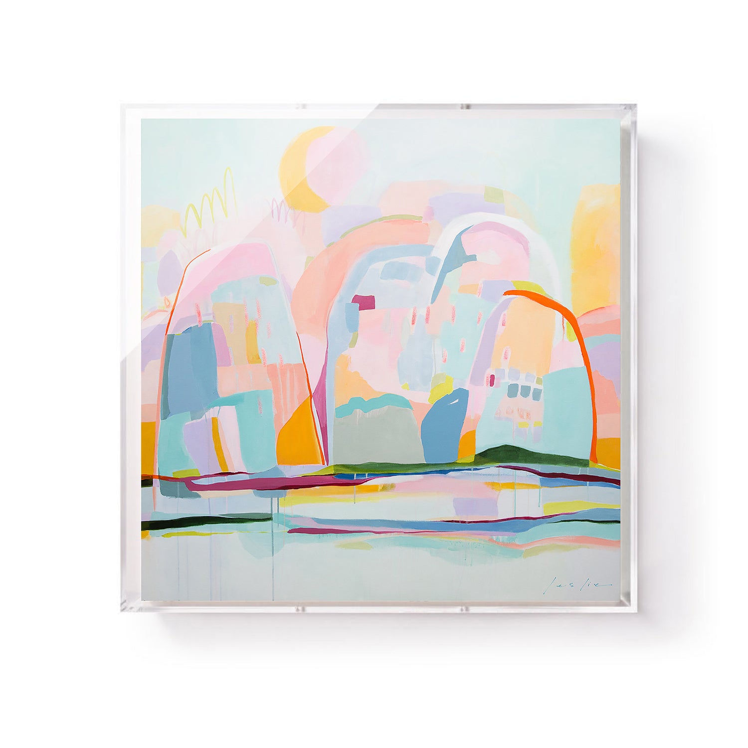 36x36" art piece printed on archival, ultra smooth, matte, fine art paper framed in two 40x40" acrylic panels (1/4 and 1/8 inch thickness) with polished edges.