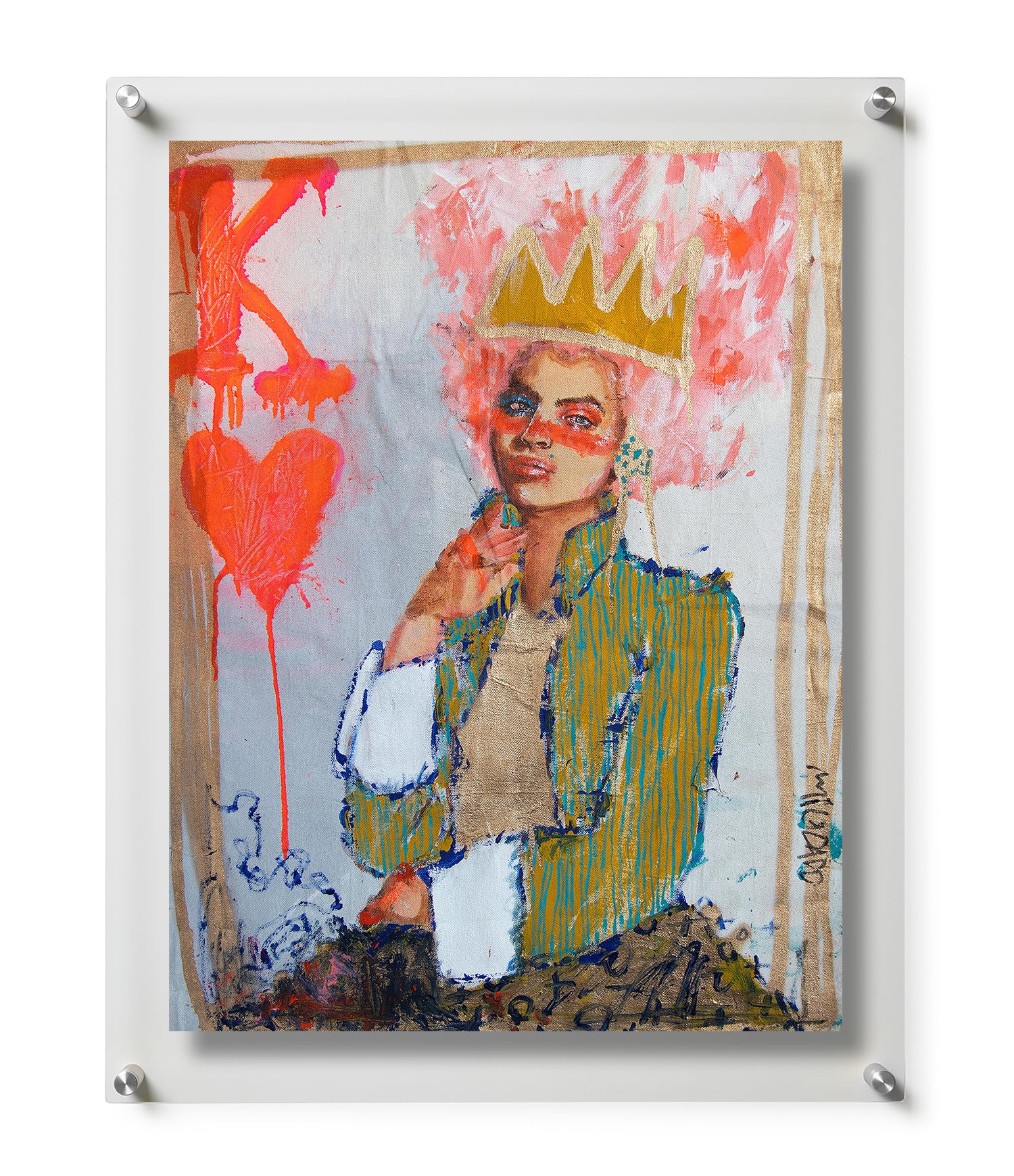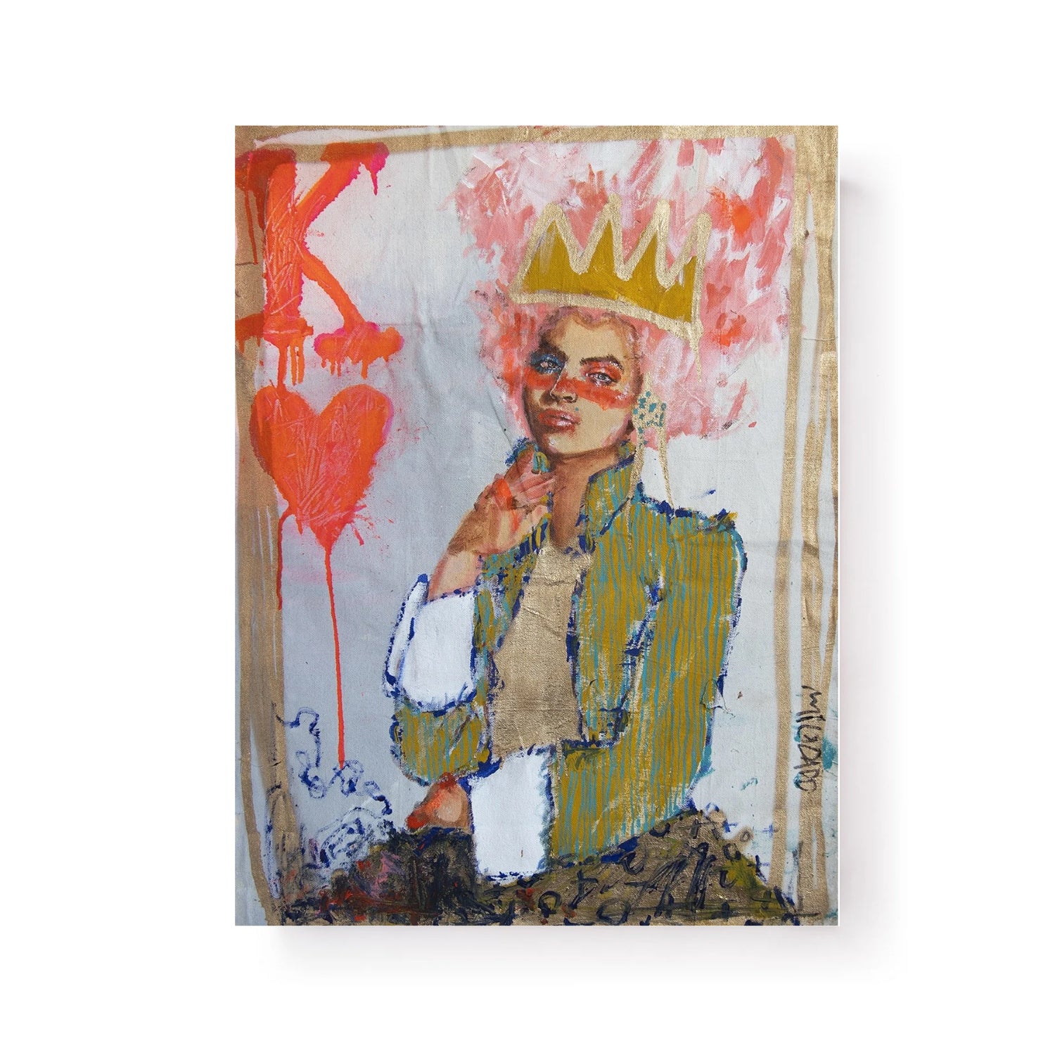 King of Hearts by MILKDADD is inspired by her emotions, daydreams, and memories of being raised in Louisiana. MILKDADD's love of old photographs, vintage magazines, and textbooks provides a level of depth and character to the portraits. These portraits also have gold leaf detailing.