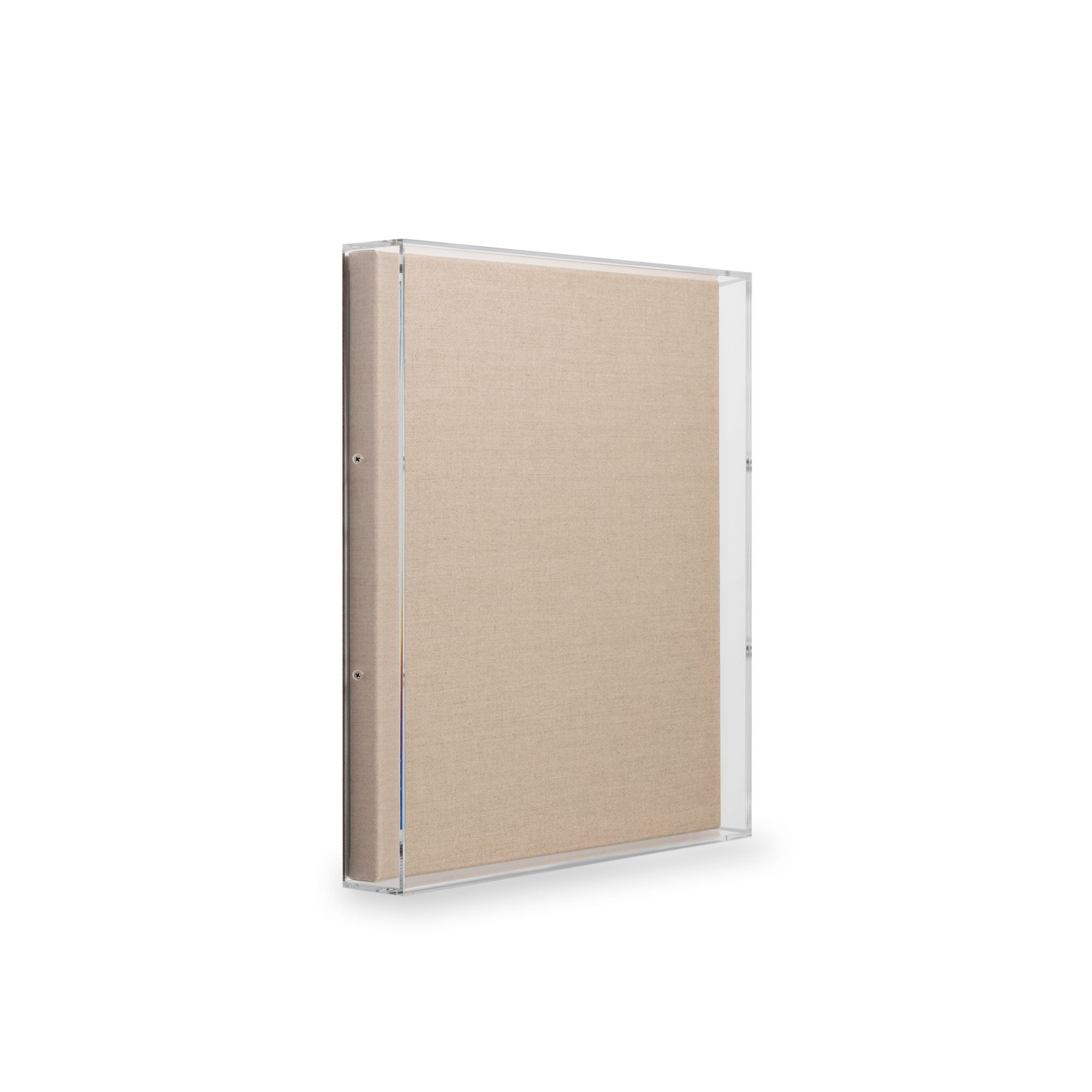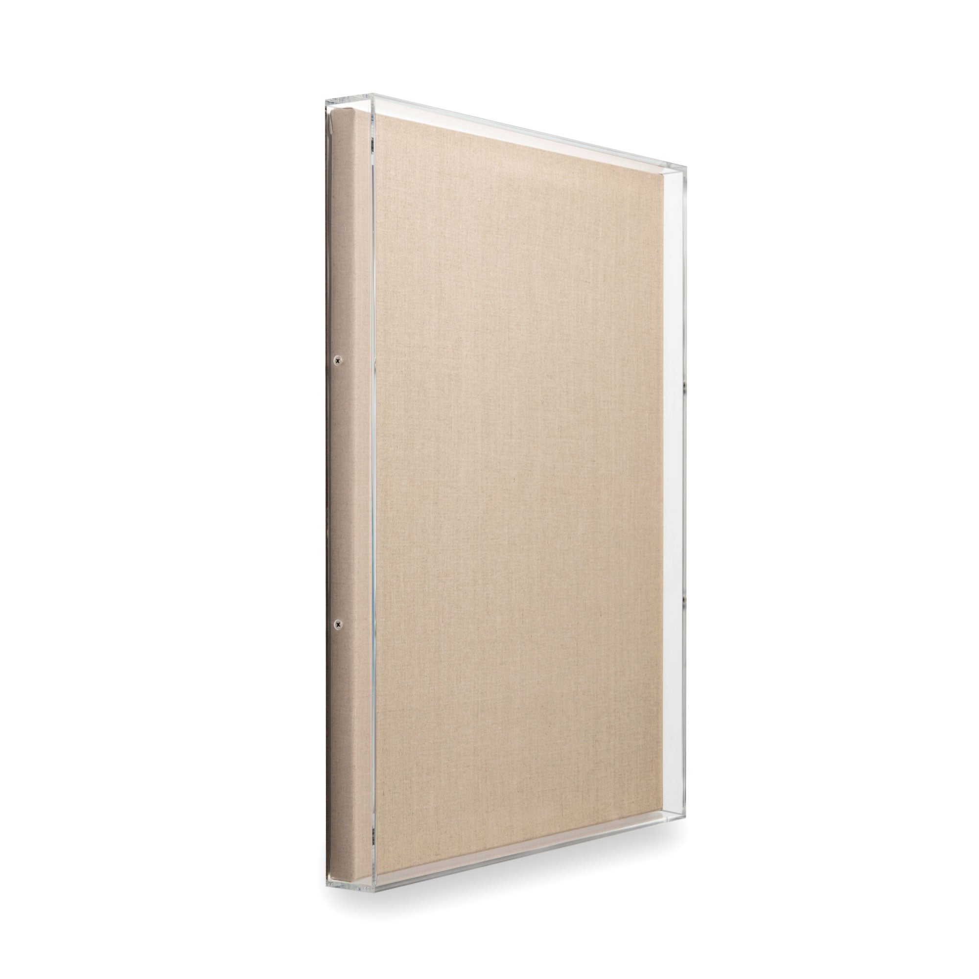5-sided acrylic shadowbox lid (3/16" thick) with Linen canvas back