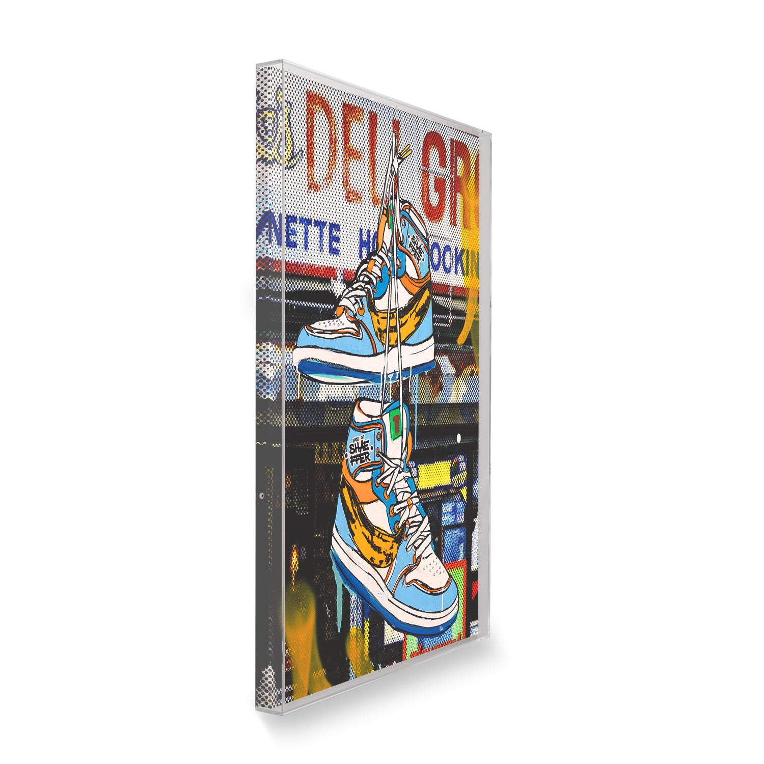 Michael Shaeffer's Illmatic comments on how sneakers are another extension of one's personal brand and identity. Shaeffer also decided to use Warhol's banana in place of the Nike swoosh, adding another layer of commentary on branding.