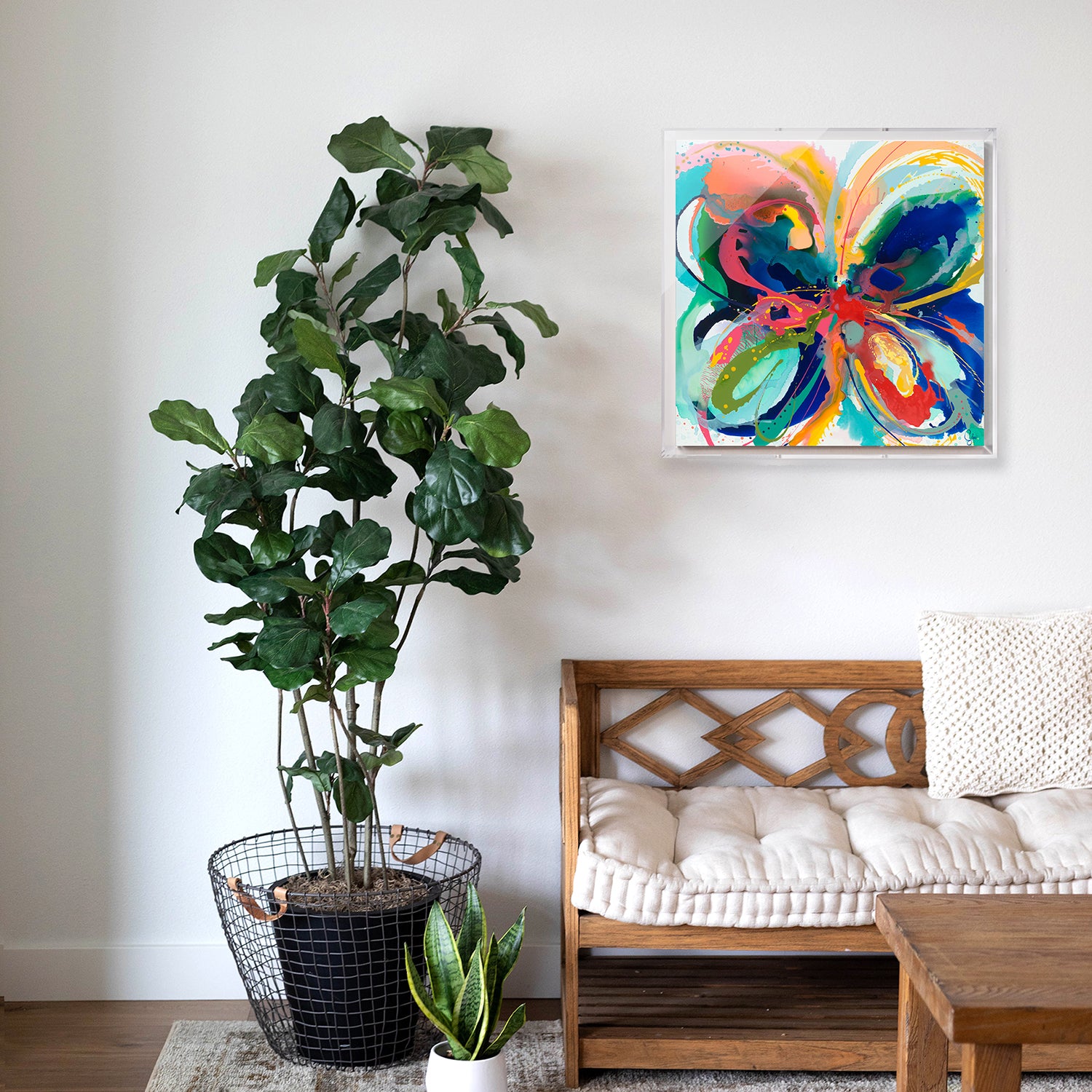 20x20" art piece printed on archival, ultra smooth, matte, fine art paper framed in two 23x23" acrylic panels (1/4 and 1/8 inch thickness) with polished edges.