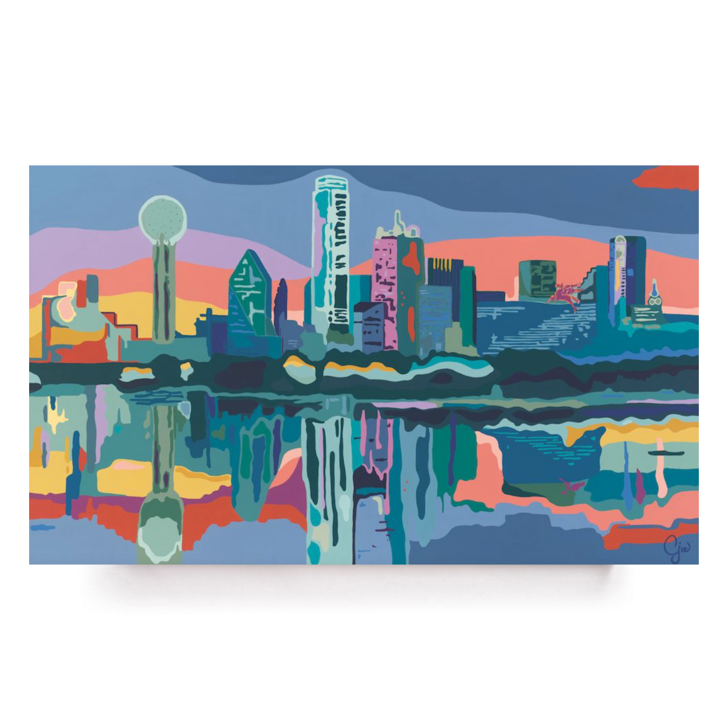 Carolyn Joe's Dallas Skyline captures the dynamic energy and architectural grandeur of Dallas. This piece showcases the iconic skyline of the city, bringing to life its towering skyscrapers and urban landscape with a unique artistic perspective.