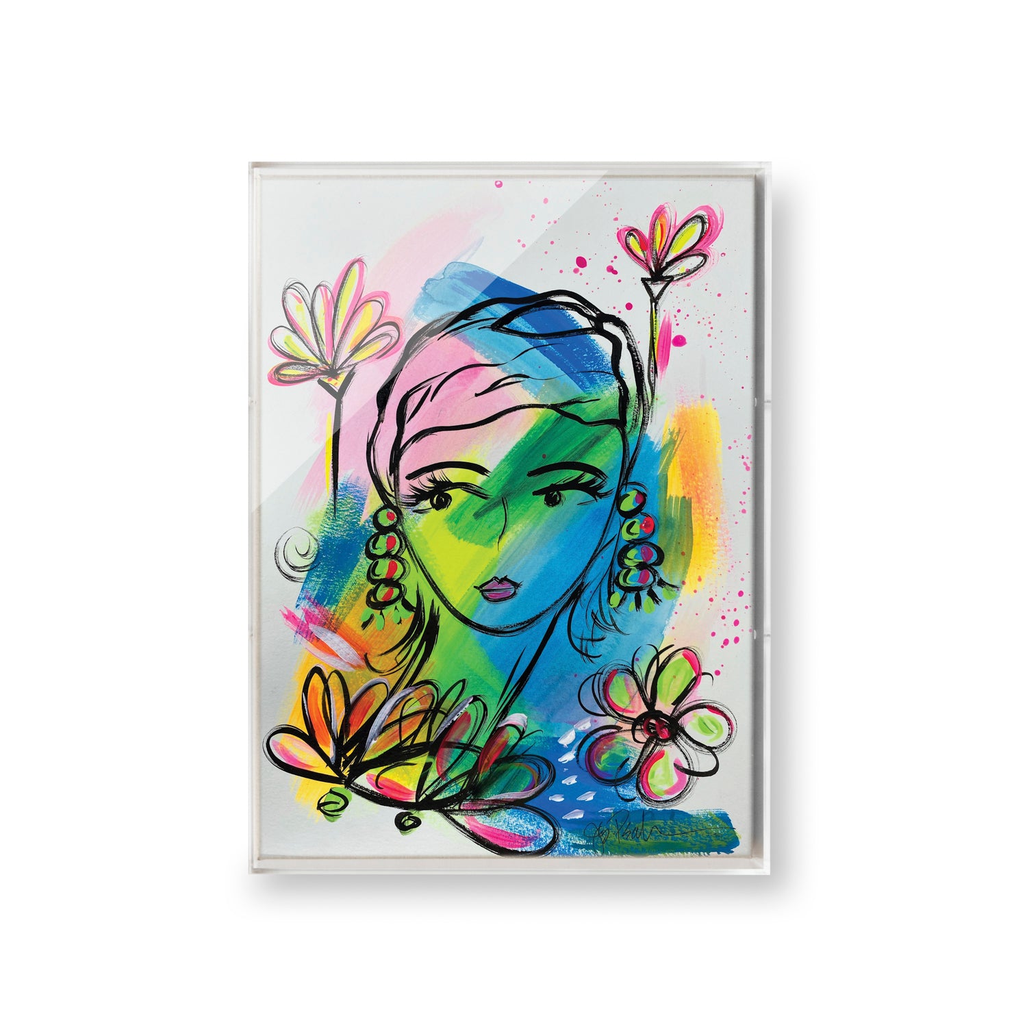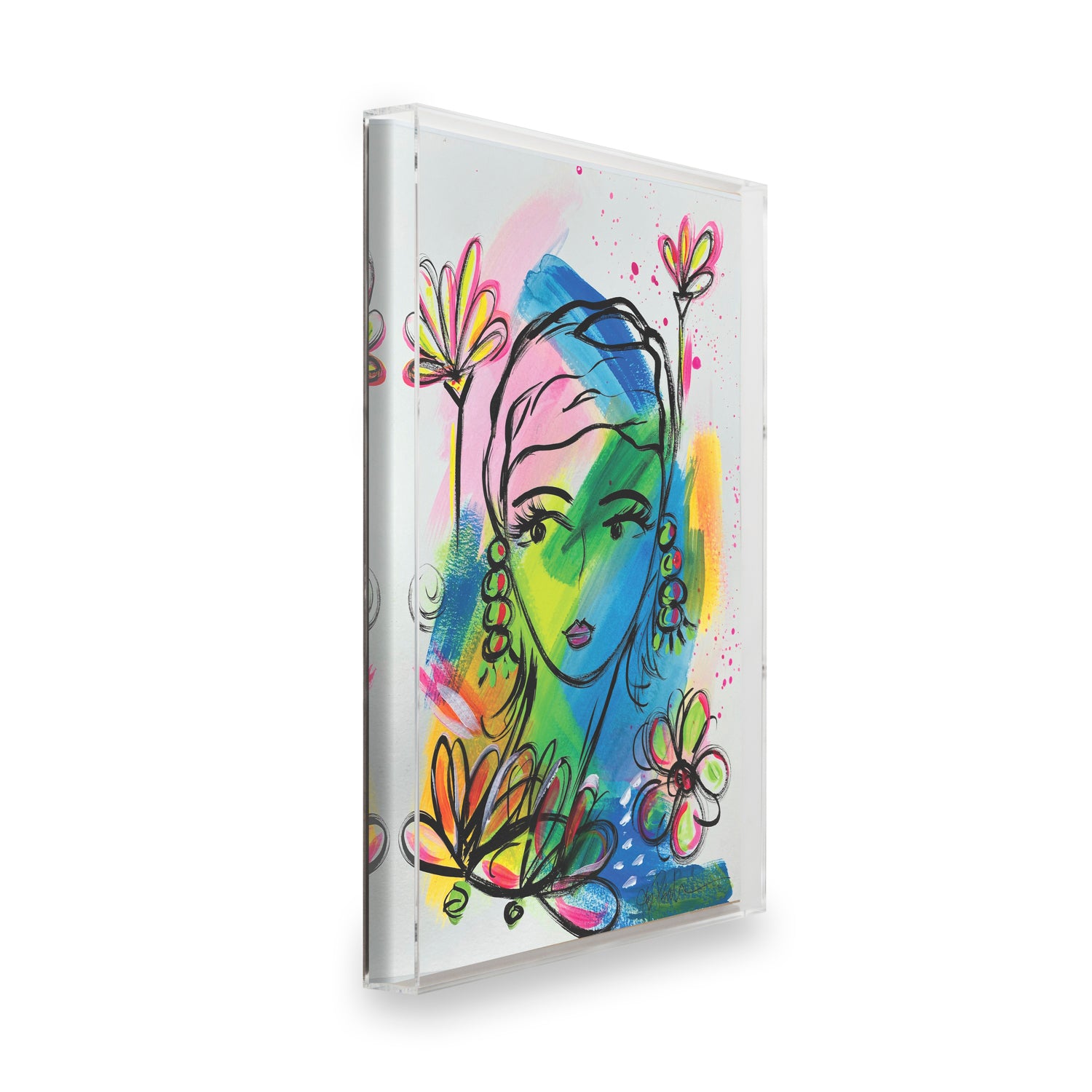 18x24" art piece printed on archival, ultra smooth, matte, fine art paper framed in two 21x27" acrylic panels (1/4 and 1/8 inch thickness) with polished edges.
