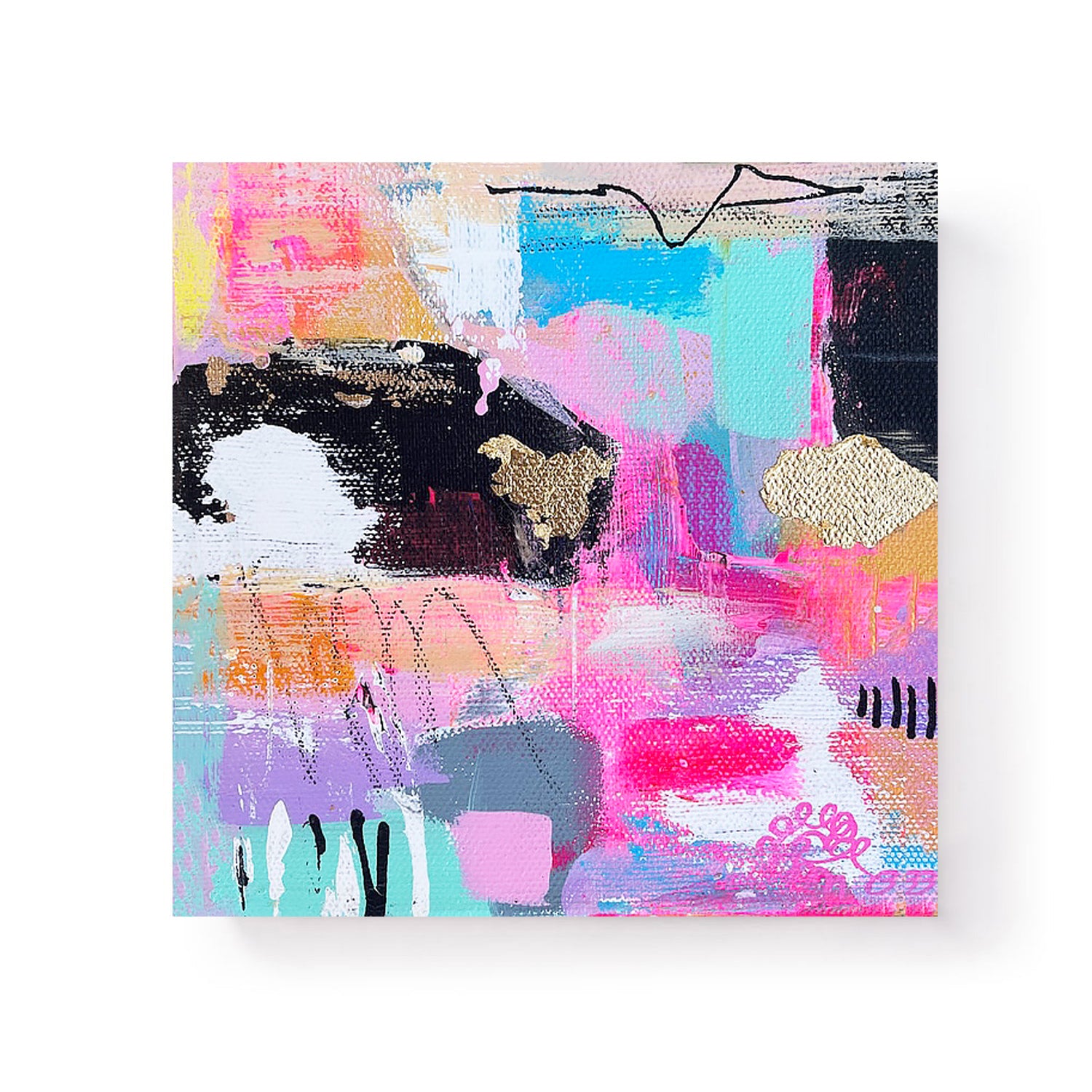 Jennifer uses many applications and layers of acrylic paint to get the desired effect, however, she doesn't limit herself to only one medium. She has been known to use oil sticks, inks, watercolors, and collages.