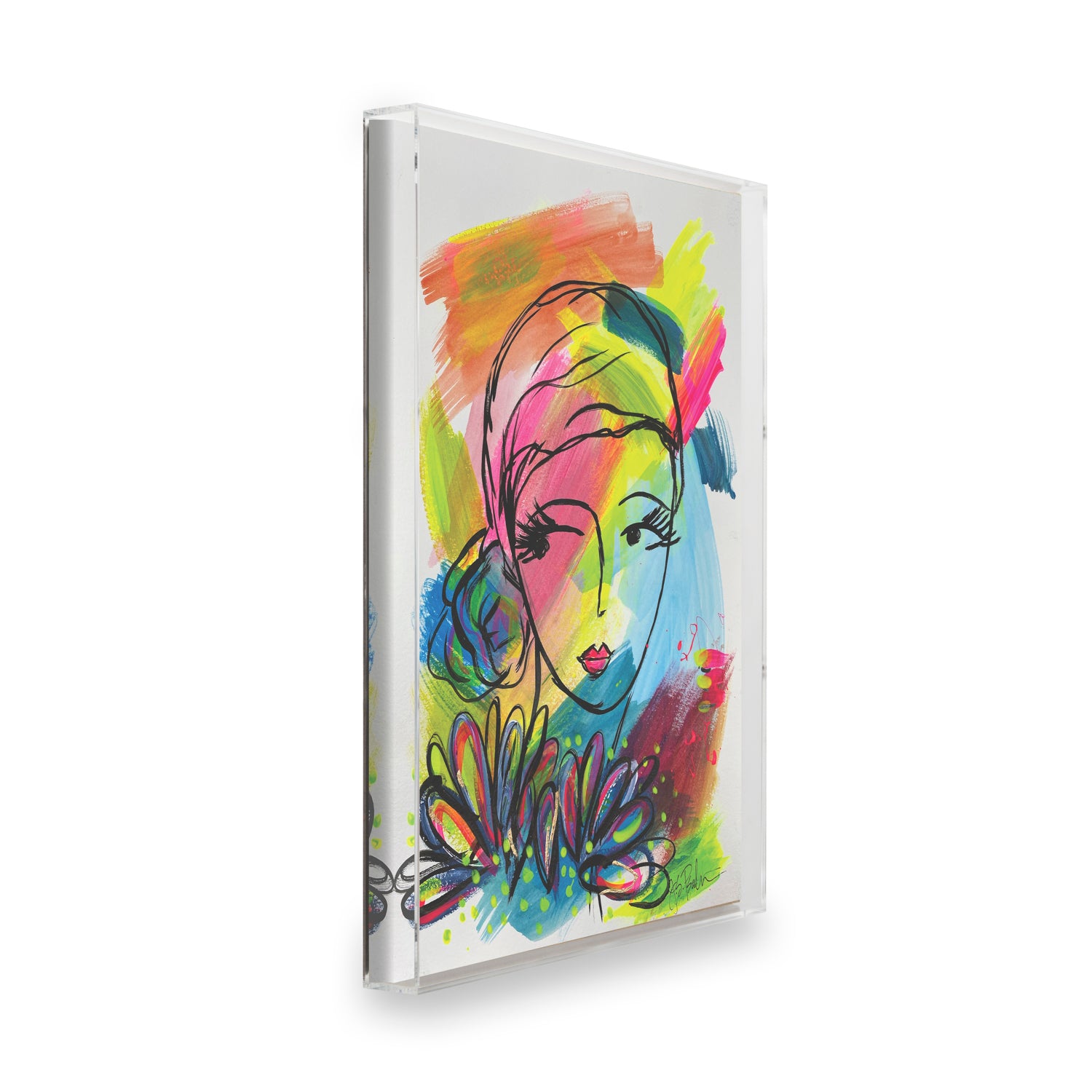 18x24" art piece printed on archival, ultra smooth, matte, fine art paper framed in two 21x27" acrylic panels (1/4 and 1/8 inch thickness) with polished edges.