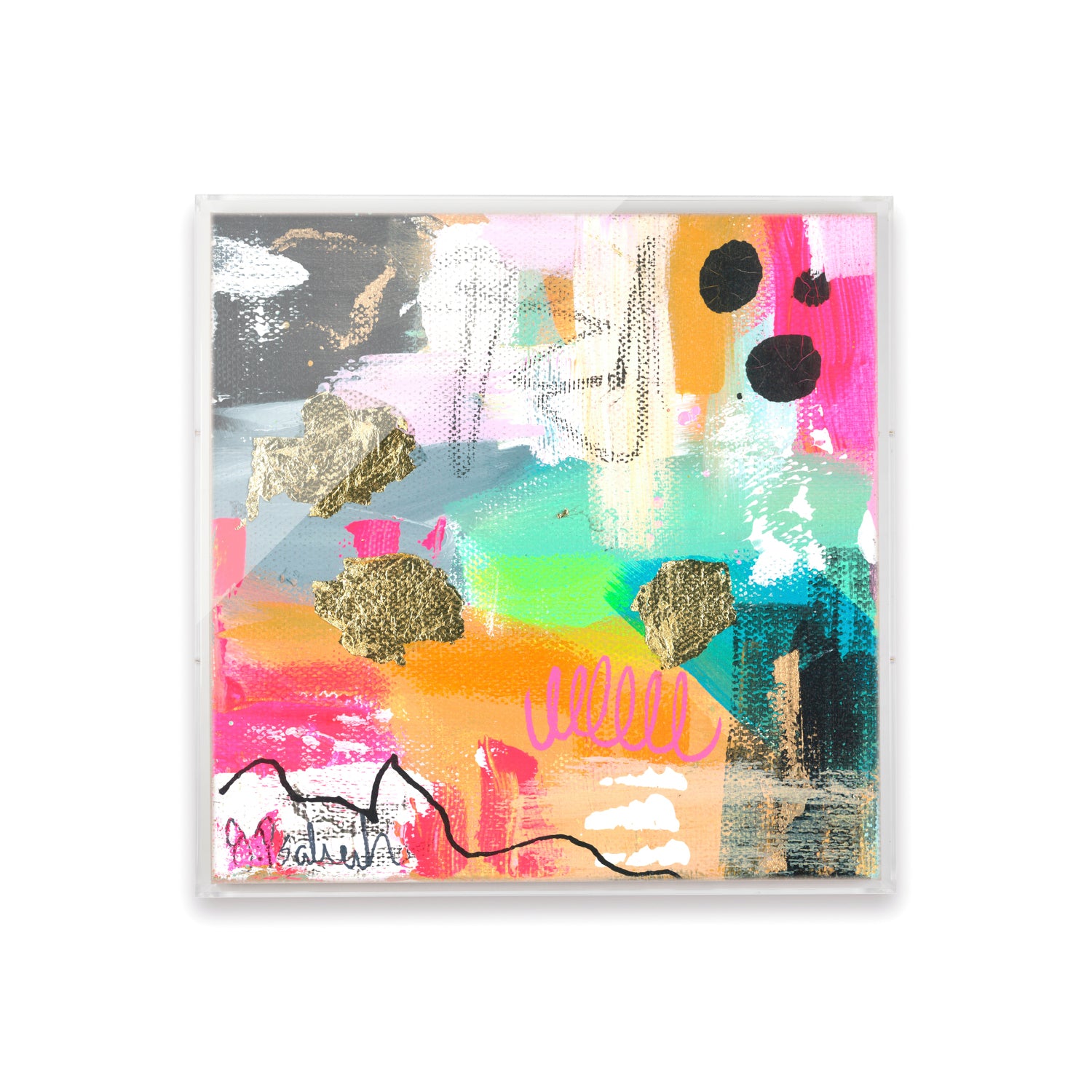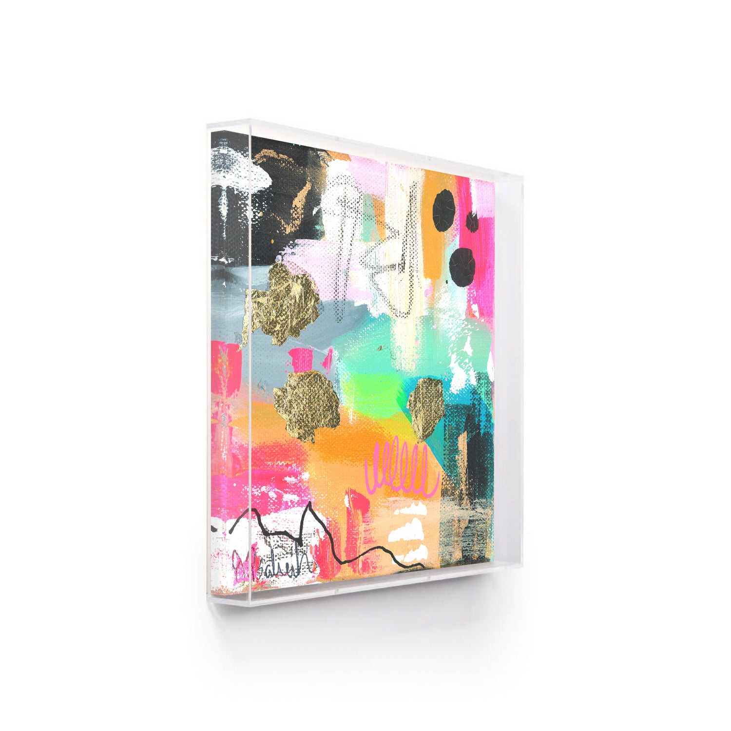 28x28" art piece printed on archival, ultra smooth, matte, fine art paper framed in two 32x32" acrylic panels (1/4 and 1/8 inch thickness) with polished edges.