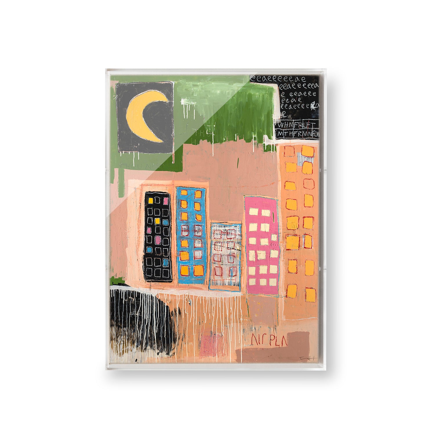 18x24" art piece printed on archival, ultra smooth, matte, fine art paper framed in two 21x27" acrylic panels (1/4 and 1/8 inch thickness) with polished edges.