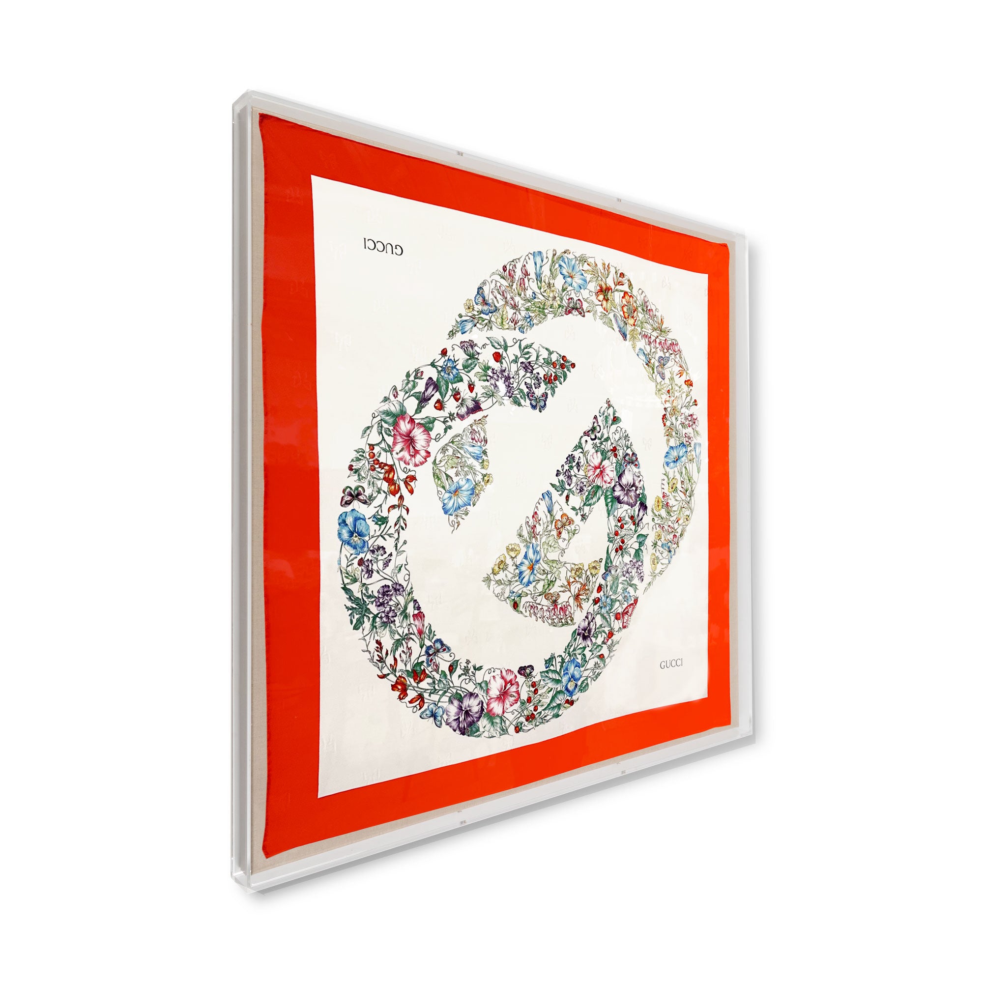 Framed Gucci Floral Red Border Scarf in a 36x36x2 Shadowbox