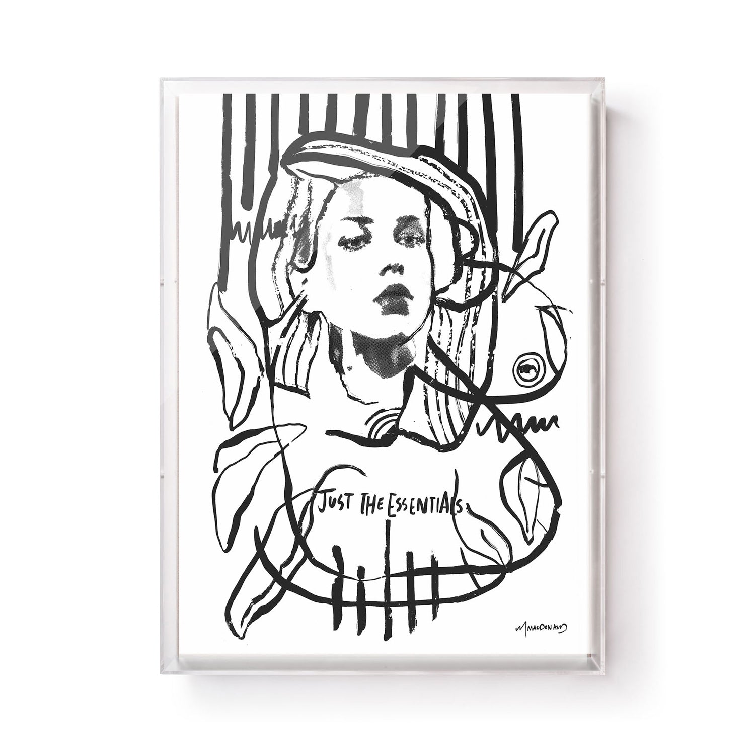 Maggie Macdonald's Just the Essentials simplifies the artistic narrative to its fundamental elements with a black-and-white palette. With clean lines, stark contrasts, and an emphasis on essential forms, "Just the Essentials" offers a sophisticated and modern aesthetic.