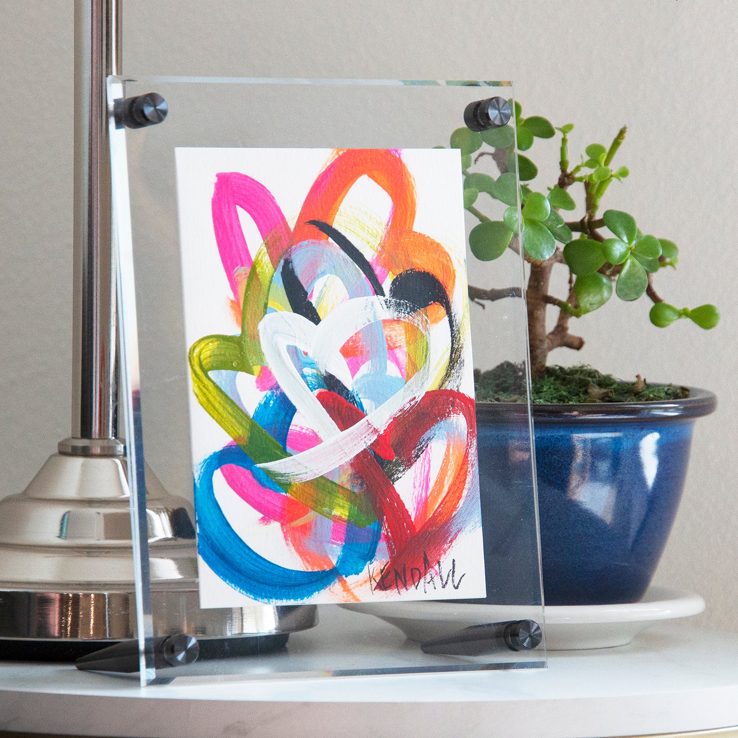 Change your art in seconds! Float your art behind a single panel of acrylic with Impressively Strong Magnets.