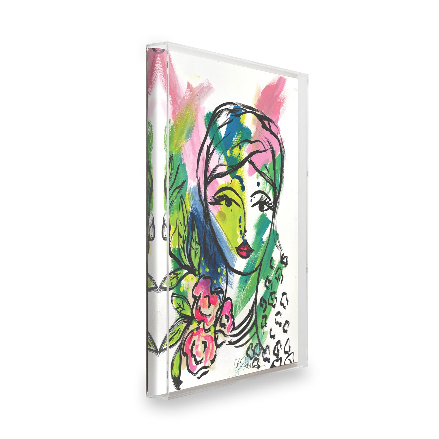 18x24" art piece printed on archival, ultra smooth, matte, fine art paper framed in two 21x27" acrylic panels (1/4 and 1/8 inch thickness) with polished edges.