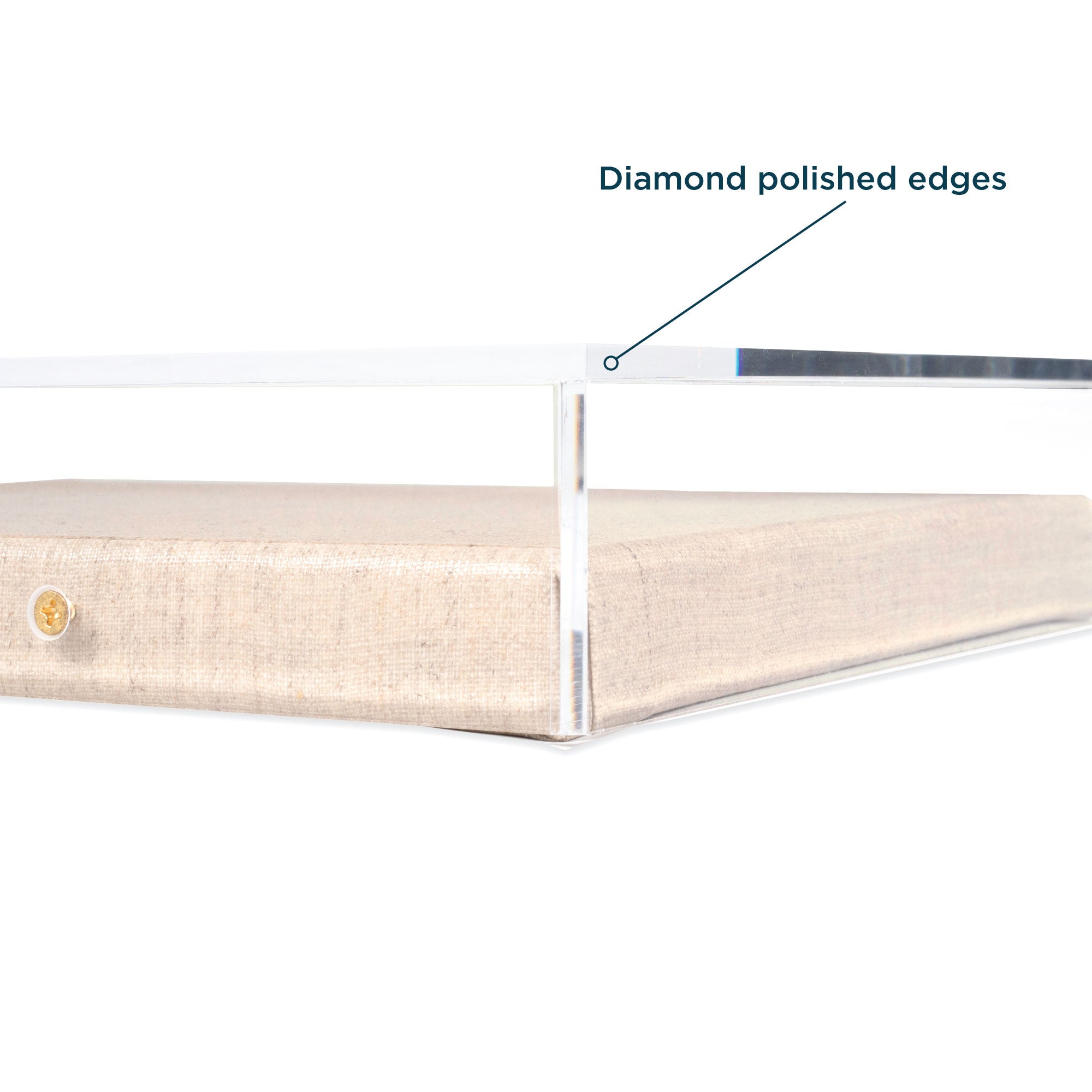 5-sided acrylic shadowbox lid (3/16" thick) with Linen canvas back